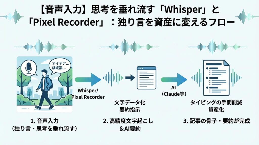 - 【音声入力】Whisper & Pixel Recorder:独り言を資産に変える