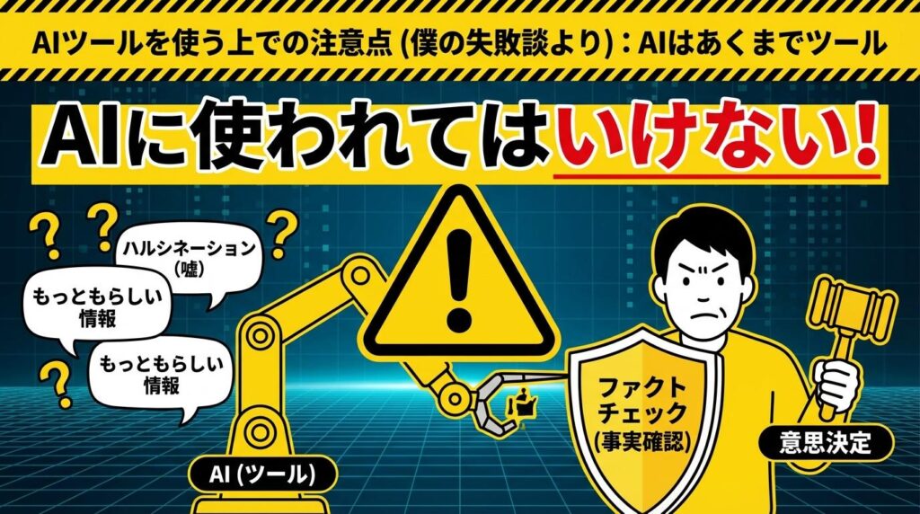 7. AIツールを使う上での注意点(僕の失敗談より)