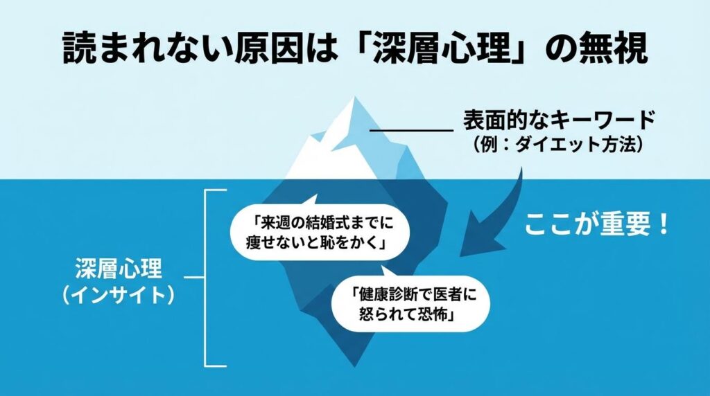 表面的なキーワード(例:「ダイエット 方法」)だけを見ても、その人が