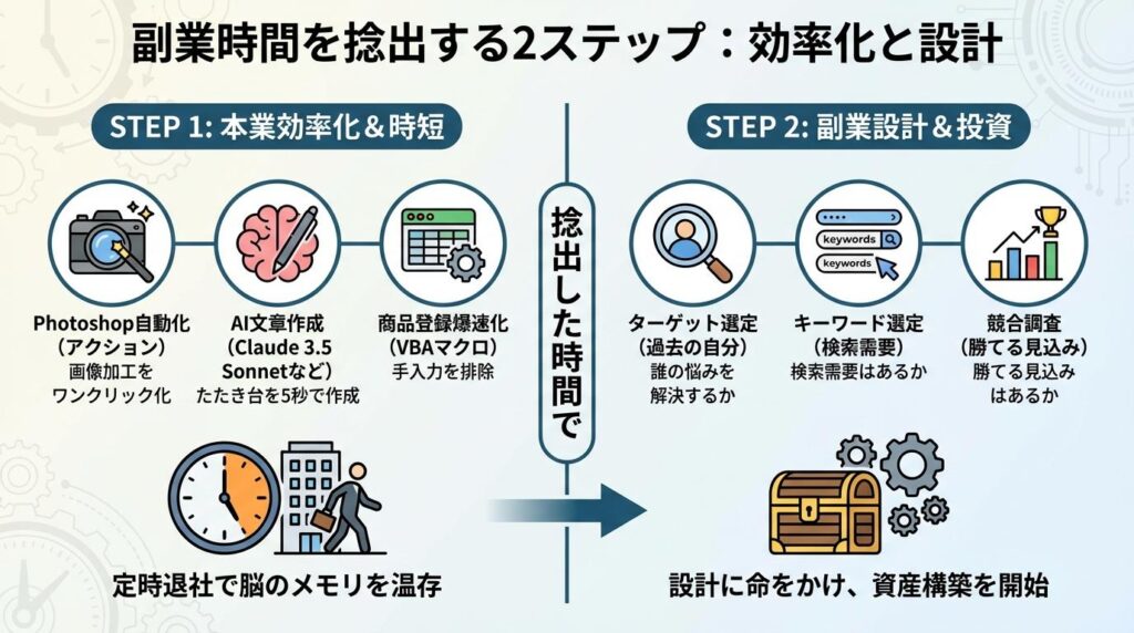 2. 時間がない人必見!本業を効率化し、副業時間を捻出する2ステップ