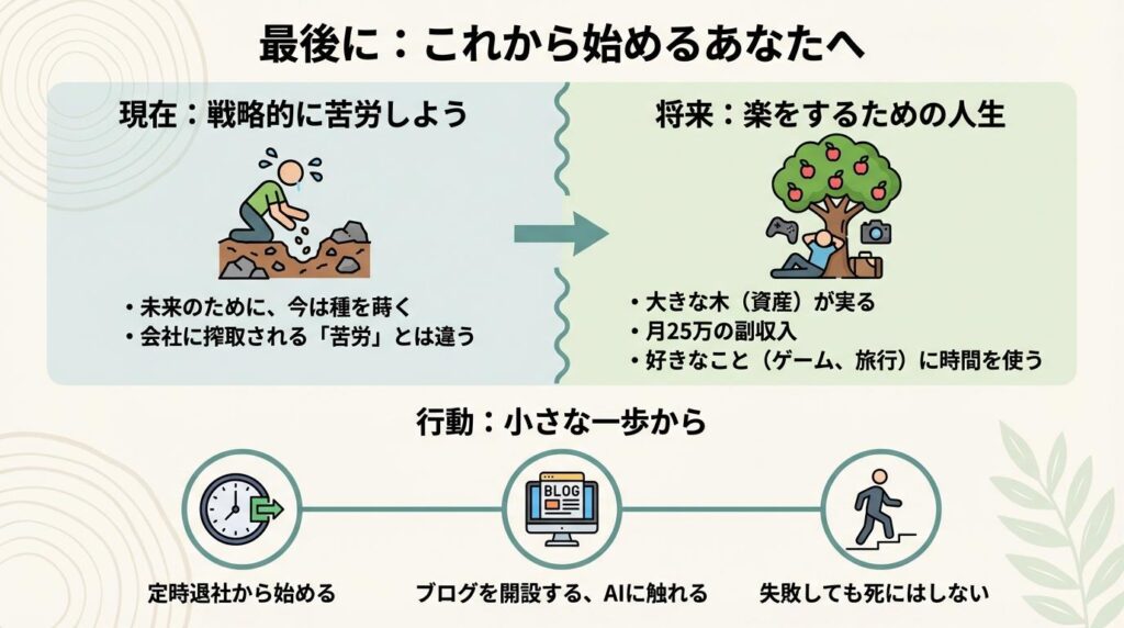 でも、何も考えずにただ会社に搾取され続ける「苦労」と、自分の未来を切り開くための「苦労」は、質が全く違います。