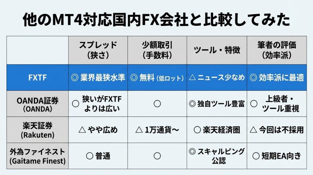他のMT4対応国内FX会社と比較してみた