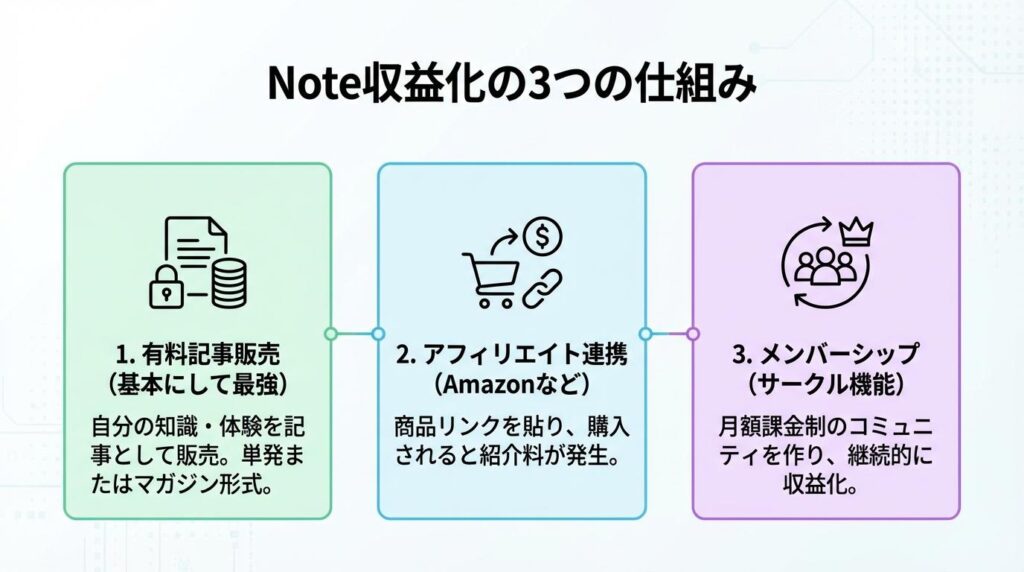 第2章:【稼ぎ方】Note収益化の3つの仕組み(有料記事・アフィリエイト・サークル)